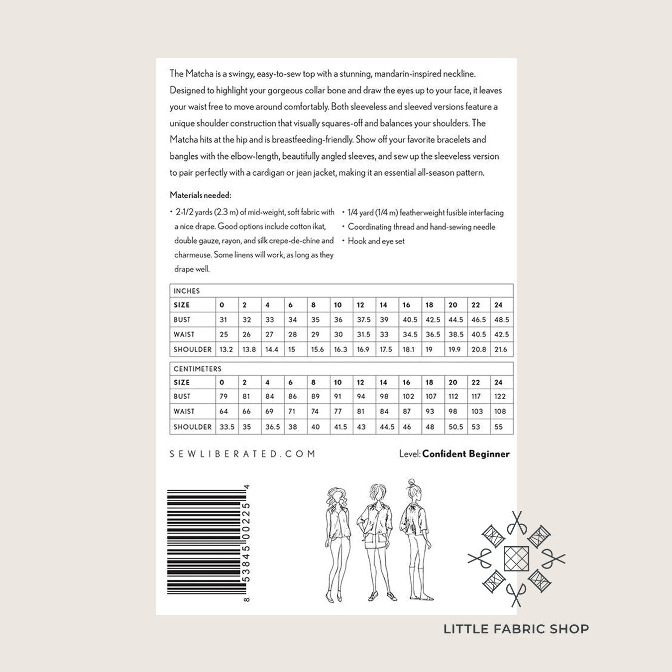 The Matcha is a swingy, easy-to-sew top with a stunning stand neckline. Designed to highlight your gorgeous collar bone and draw the eyes up to your face, it leaves your waist free to move around comfortably.