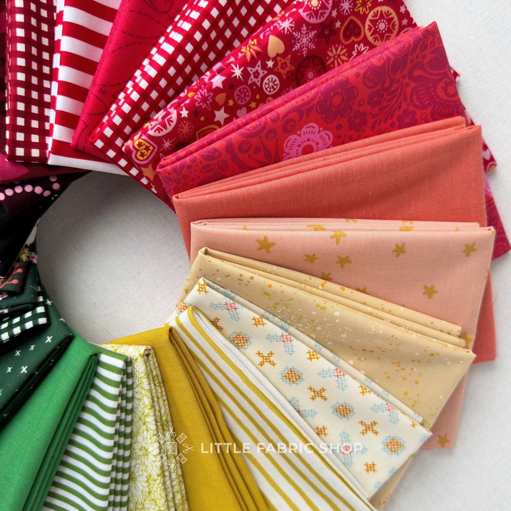Bring on the cheer with our classic scrappy fat quarter bundle! This curated collection is ready for all your merry making needs this holiday season. You'll find a colorful mix of prints from beloved designers like Ruby Star Society, Alison Glass, Lizzy House, Anna Maria Parry, Riley Blake, Cotton + Steel, FIGO, and Cloud 9 Fabrics. Use this perfect palette to create a beautiful quilt, festive decor, stockings, or a tree skirt!