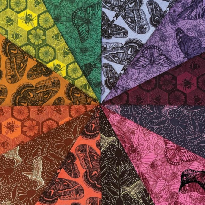 Indelible: Ink by Anna Maria Parry is a striking pollinator-inspired fabric collection that celebrates the beauty and importance of birds, bees, butterflies, and moths. Part of the Indelible series, this collection blends intricate line art with deep, saturated colors for a look that feels both timeless and bold.