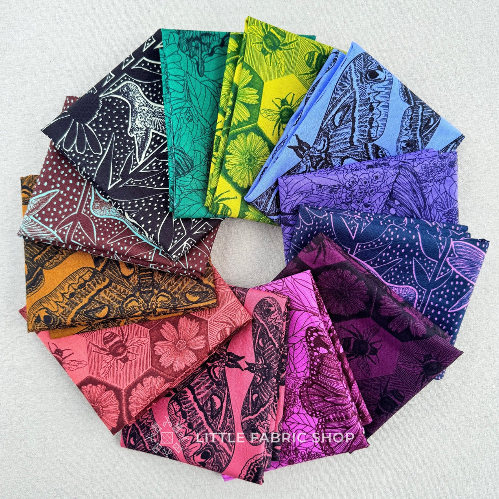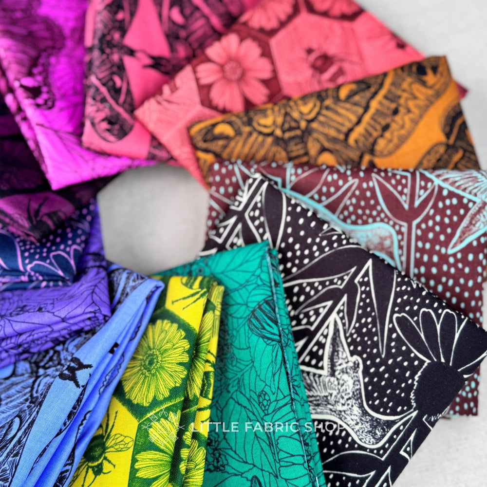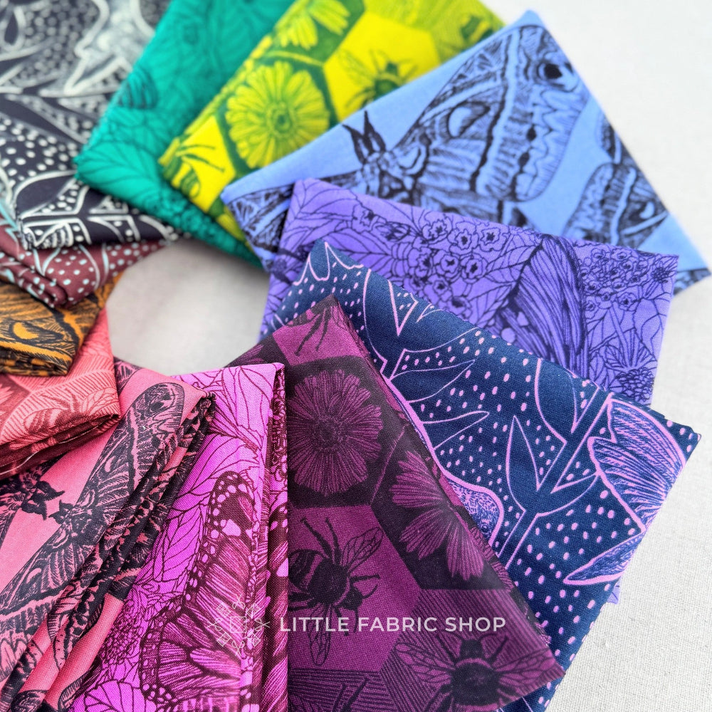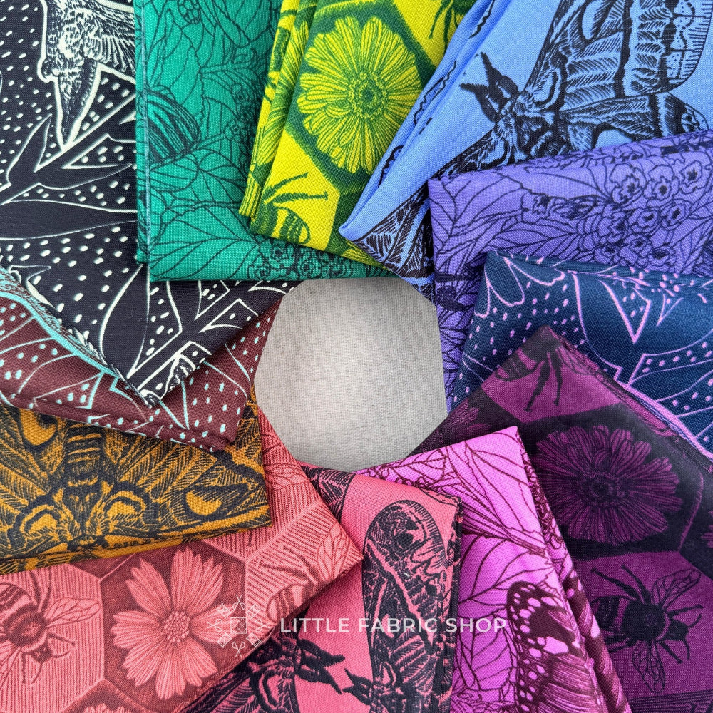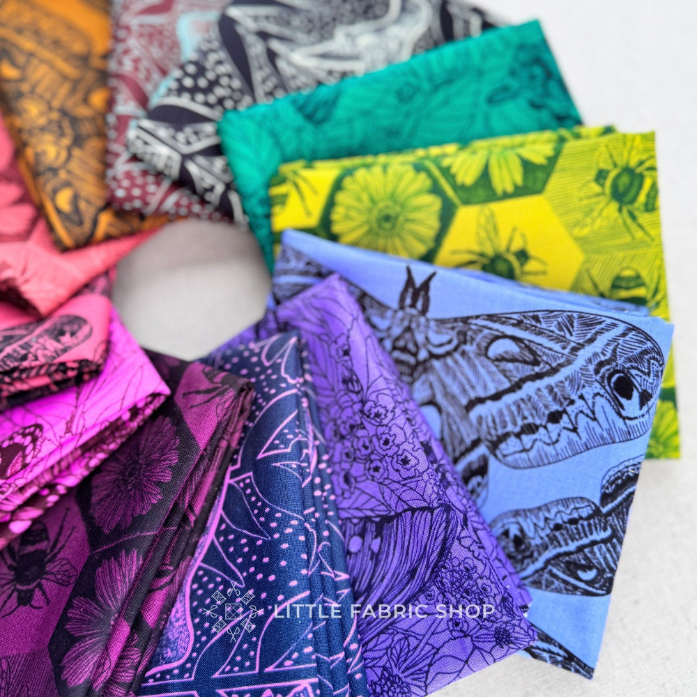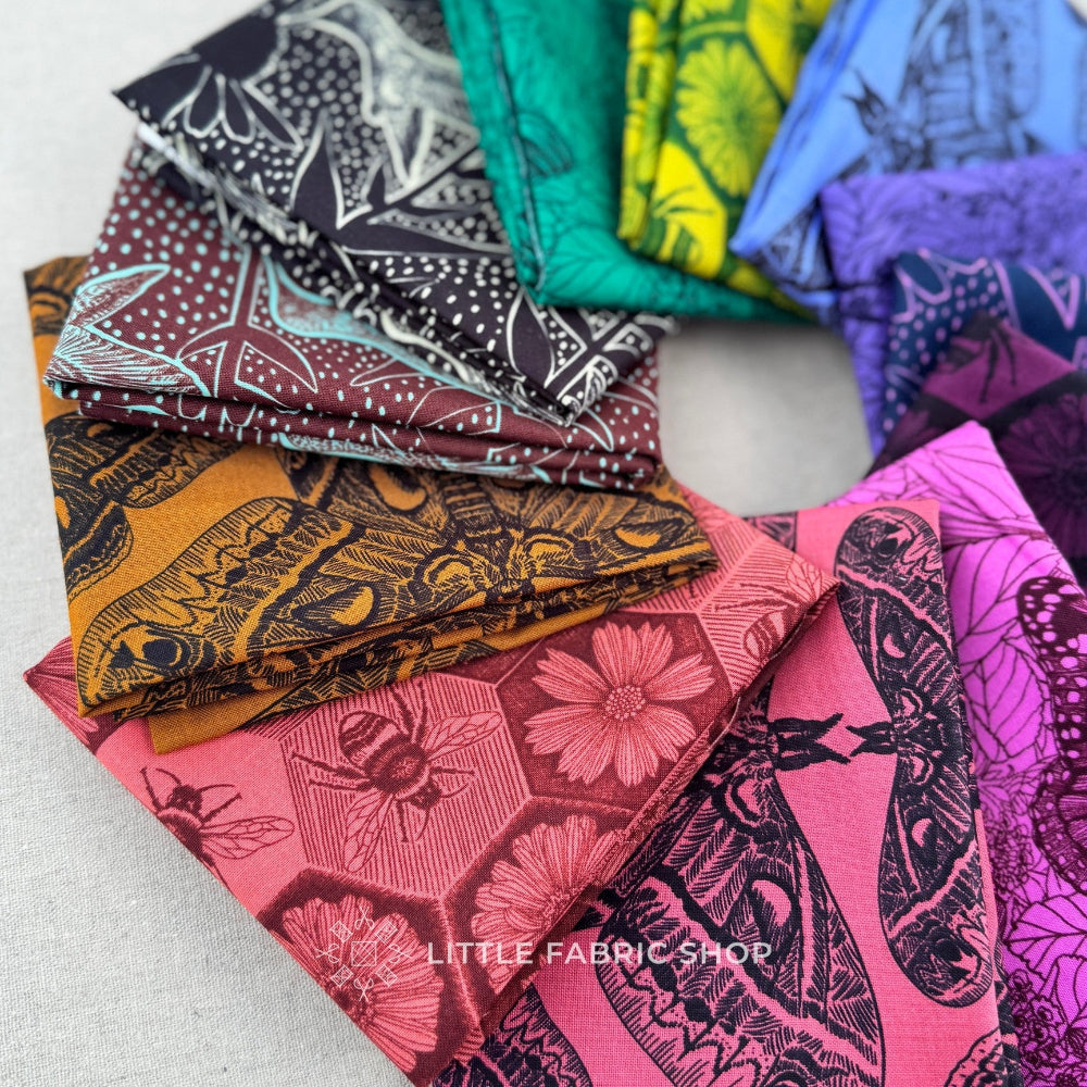Indelible: Ink by Anna Maria Parry is a striking pollinator-inspired fabric collection that celebrates the beauty and importance of birds, bees, butterflies, and moths. Part of the Indelible series, this collection blends intricate line art with deep, saturated colors for a look that feels both timeless and bold.