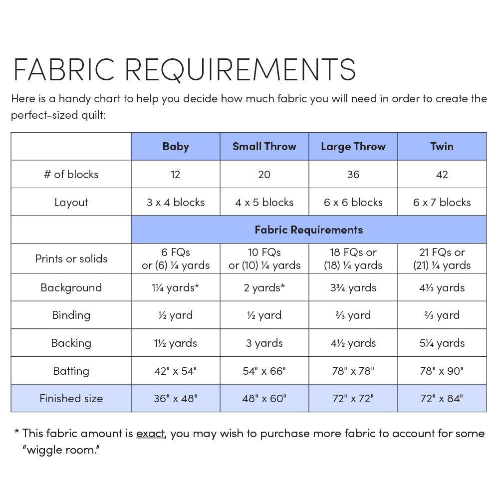 - Take a look at the planning chart for details on sizes and fabric requirements.