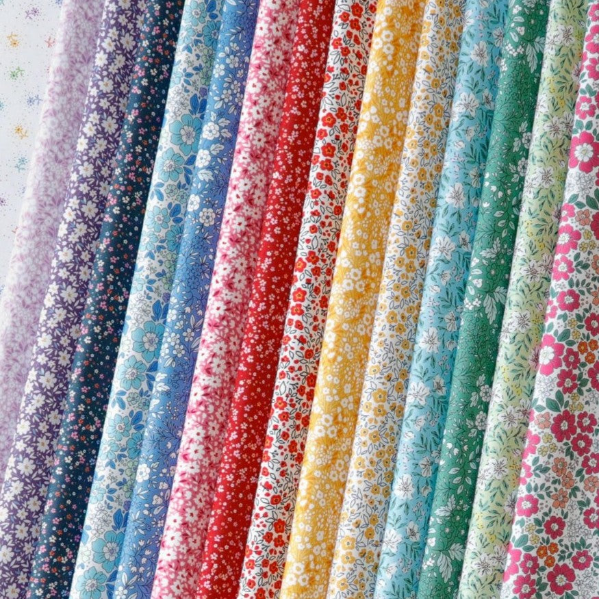 The Pocket Posies collection by FIGO Fabrics beautifully captures the sweet, simple charm of vintage feedsack prints. This lovely line offers a timeless appeal through its delicate, small-scale blossoms and wonderfully nostalgic aesthetic.