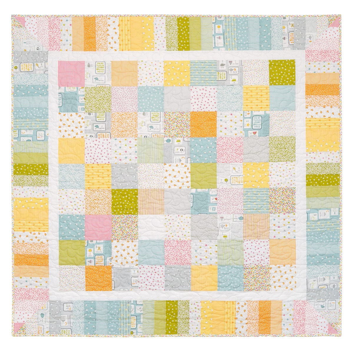 Celebrate sunshine and color with the Summertime Charm Quilt! This pattern shows you how to make this adorable square quilt which can be used as a table topper, picnic blanket or wall hanging. This pattern is a great choice for beginners because it can be made quickly and easily by using pre-cut charm packs and jelly rolls!