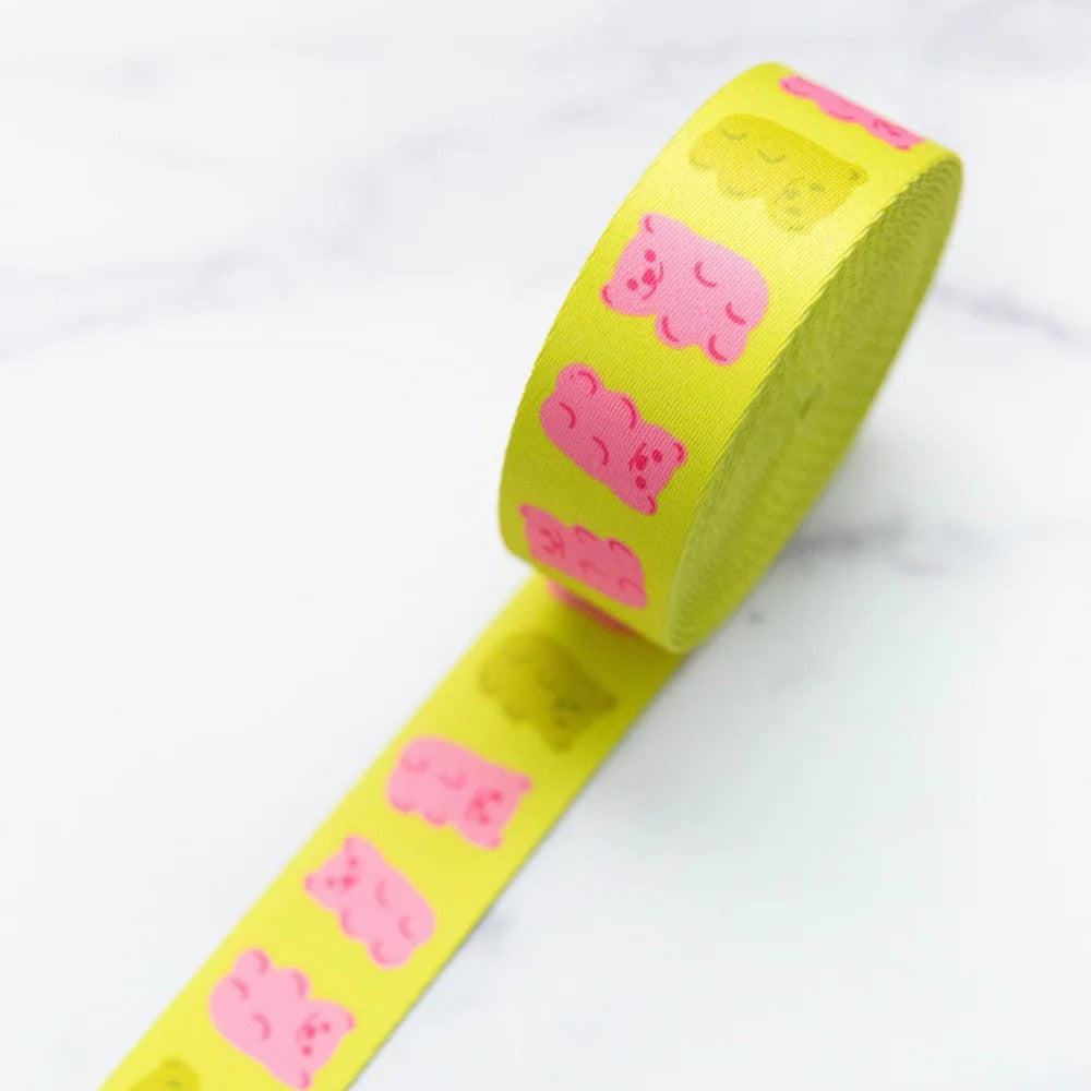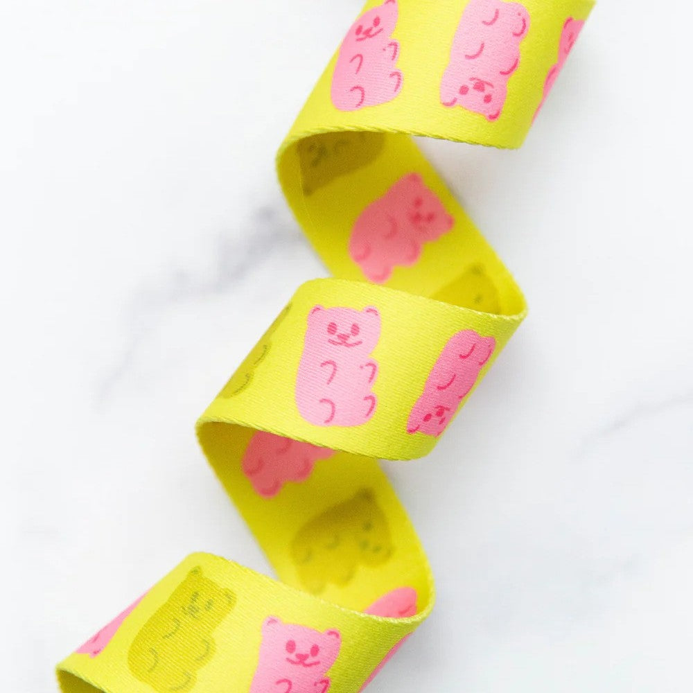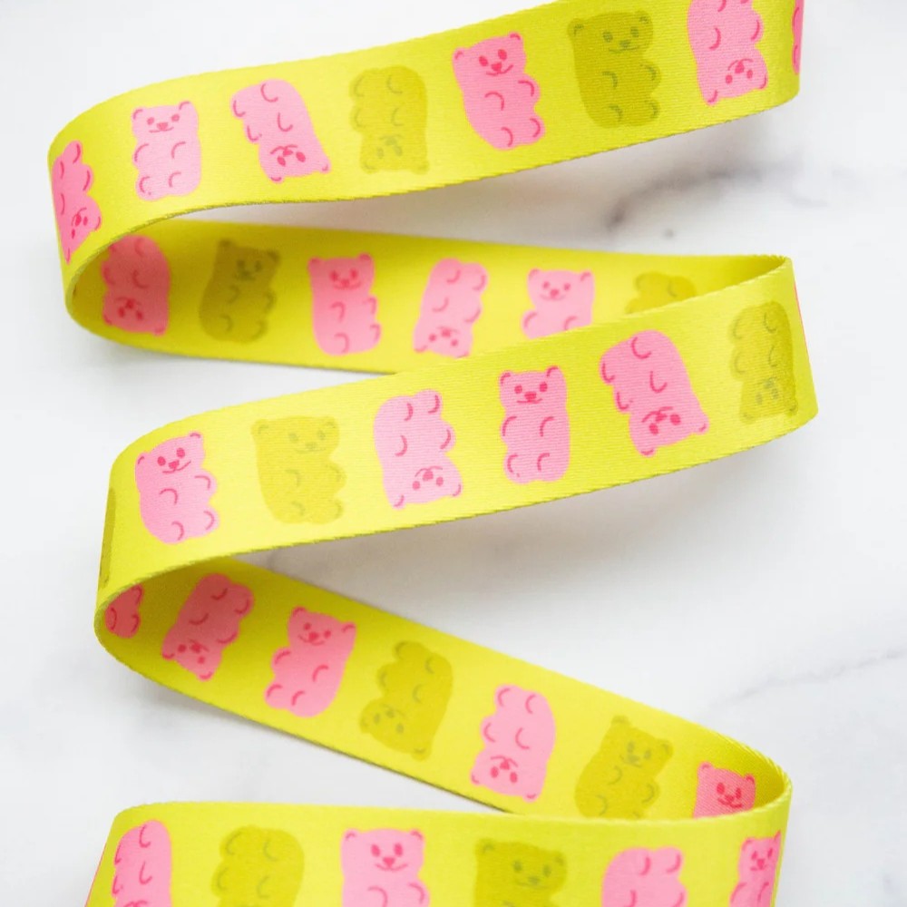 Ruby Star Society Webbing is a vibrant collection of high-quality printed belting, showcasing some of the most beloved prints from the designers’ iconic fabric lines. This one features pink, purple, and yellow gummy bears on a citron background. Durable yet stylish, this webbing brings a fun, creative flair to any sewing project - perfect for bag straps, handles, and eye-catching accents.