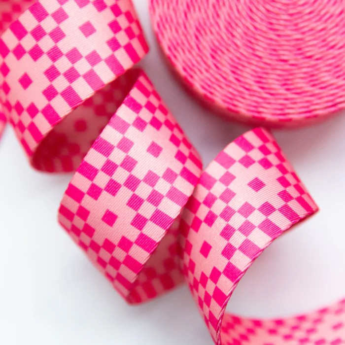 Ruby Star Society Webbing is a vibrant collection of high-quality printed belting, showcasing some of the most beloved prints from the designers’ iconic fabric lines. This one features a beautiful neon pink geometric print . Durable yet stylish, this webbing brings a fun, creative flair to any sewing project - perfect for bag straps, handles, and eye-catching accents.
